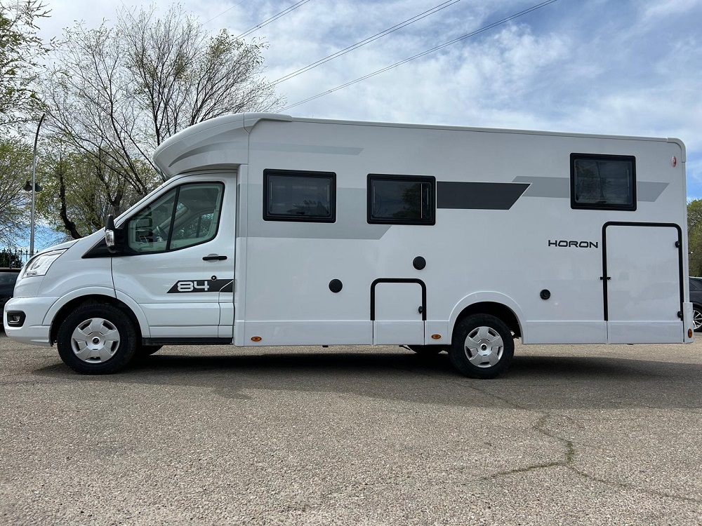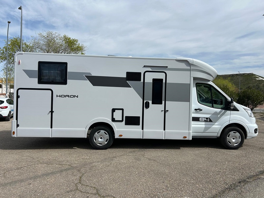 Construida sobre el robusto chasis Ford Transit, equipado con el motor 2.0L EcoBlue de 165 CV, la HORON 84 XT ofrece una combinación perfecta de potencia y control. Su principal atractivo radica en una ingeniosa distribución que aprovecha sus más de 7,45 metros de longitud para ofrecer un salón delantero extremadamente amplio y una zona de noche trasera con dos camas individuales convertibles en matrimonio, todo ello con un garaje de gran capacidad.
